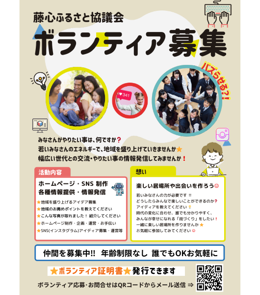 12/13(土)9:30より第5回町会長会議を開催します。関係者はご出席をお願いします。 12/17(水)藤心近隣センター多目的ホールで、寄せ植え講座を開催します。詳細は、【情報メニュー】⇒《虹色はな倶楽部》からご確認ください。 2026年2/23(月・祝)スマホ活用術教室を開催します。詳細は、下のポスターをクリック👆してください。 藤心ふる協では、地域活動を一緒に盛り上げるメンバーを募集中です! 詳細は、下のポスターをクリック👆してネ! 最新のお知らせ・投稿は、(↓新着 )ボタンから確認できます。